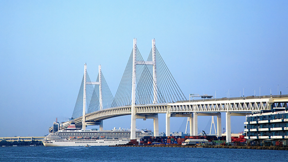 横浜(요코하마) 항을 가로지르는 약 860m 현수교